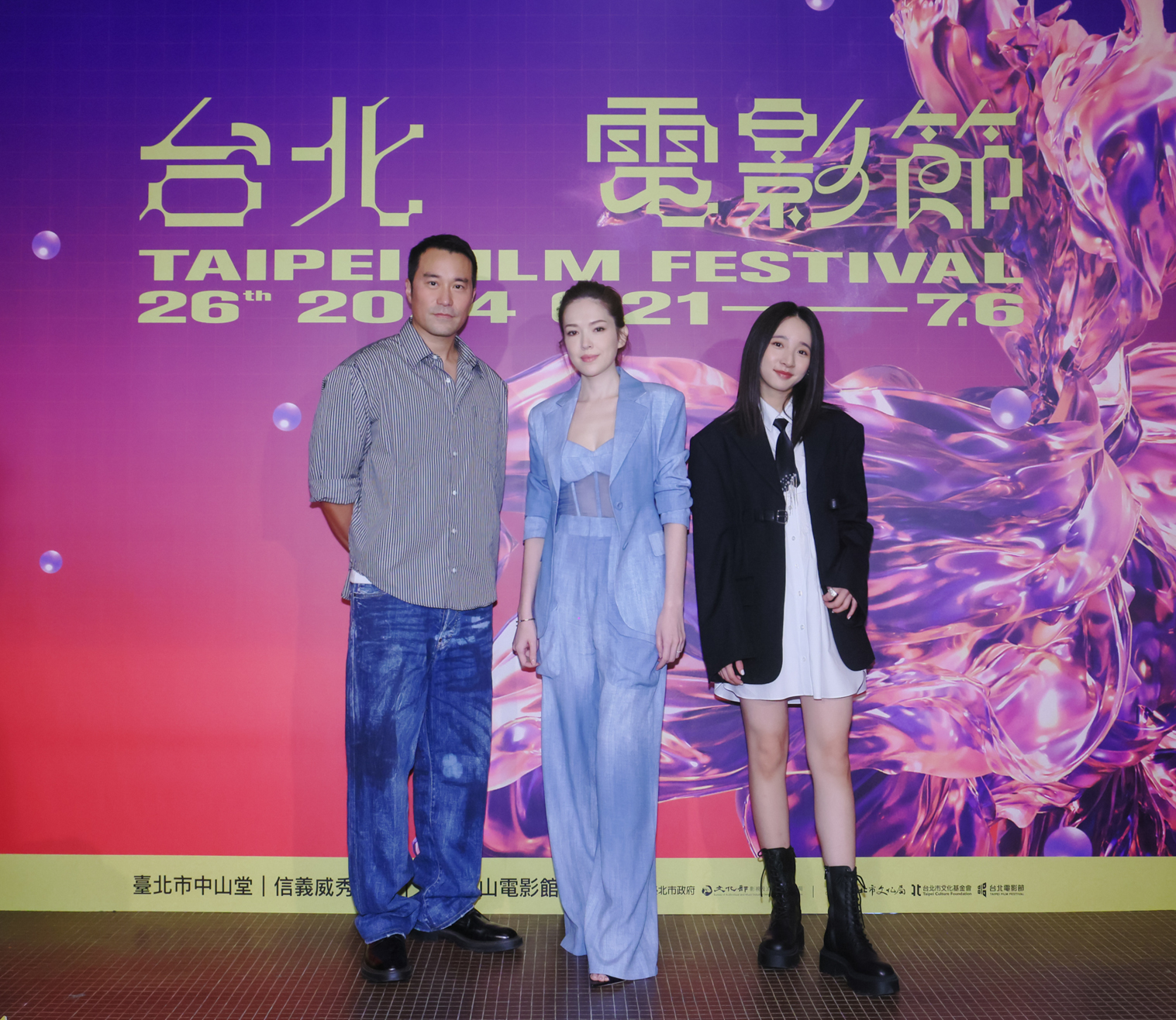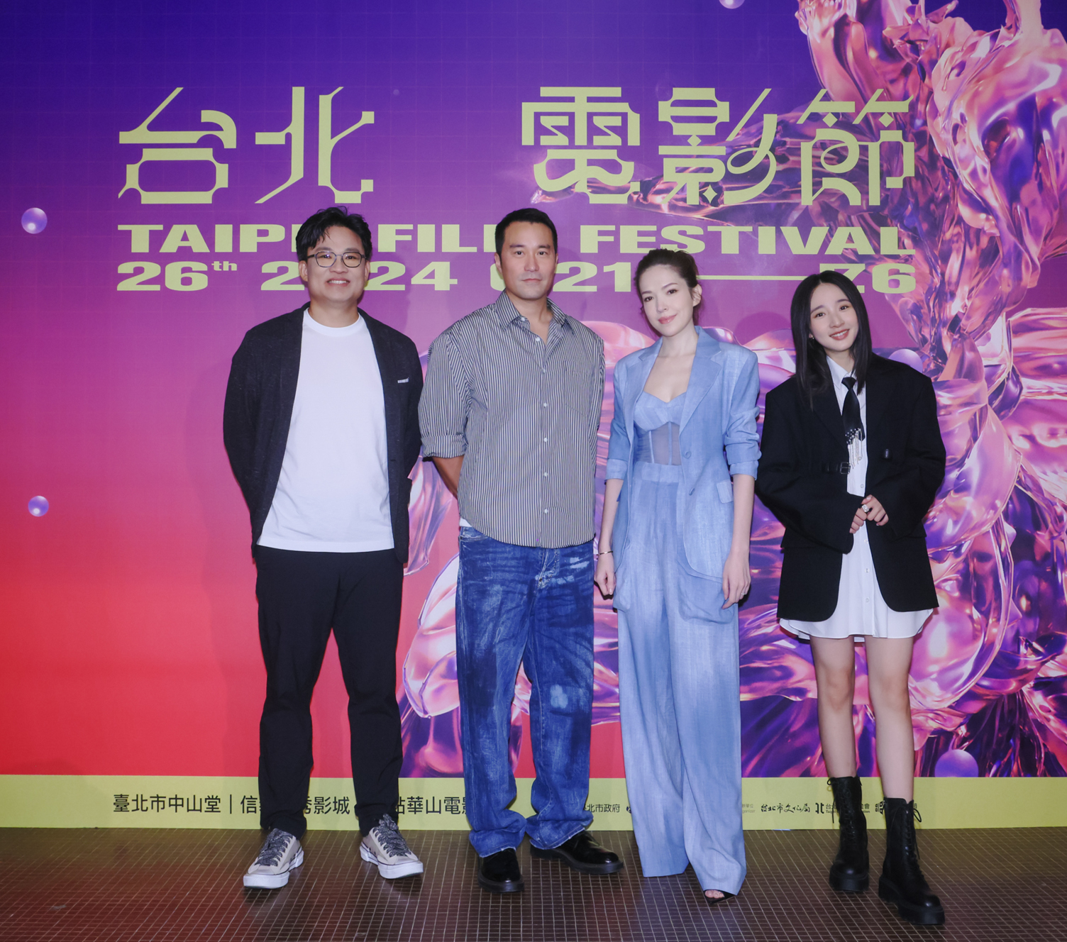 《誰是被害者:第2季》21日在台北電影節世界首映,監製曾瀚賢(左起)率領張孝全、許瑋甯、李沐合體出席映前記者會。
